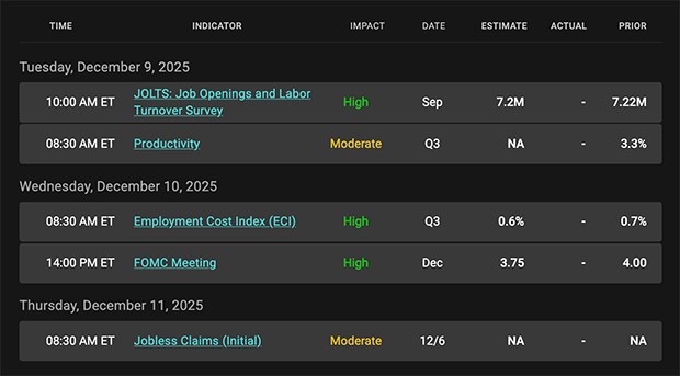 We'll also see a fresh round of Treasury auctions, which will hit the market at a time when yields are sitting near 2025 lows. That makes demand especially important to watch. Strong buying, both at home and from international accounts, would help validate the recent move lower in yields. But if demand is soft, auctions can act as a speed bump and pull rates higher in the short term. With the Fed, the SEP, and supply hitting all at once, next week has all the ingredients to break the quiet trading environment we've been in.