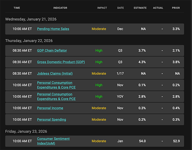 Economic Calendar for the Week of January 19–23