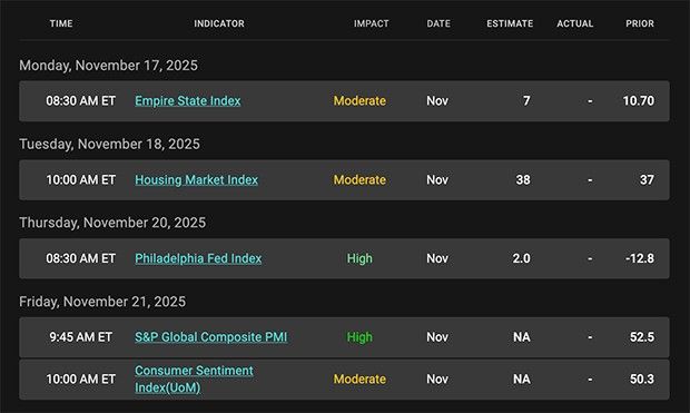 Thursday features the Philadelphia Fed Manufacturing Index at and Existing Home Sales data. Scattered Fed speeches, including from Governors Waller and Barr, could further shape expectations for monetary policy amid lingering rate uncertainty as we approach the December Fed Meeting.