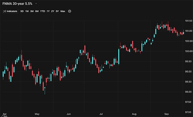 The CME Fed Watch tool shows the Fed Funds Futures are currently pricing in two rate cuts to finish 2025. This means the federal funds rate would fall from its current range of 4.00% to 4.25% to a range of 3.50% to 3.75%. The Fed Funds Rate has no impact on mortgage rates but will help lower all short-term rates like credit cards, auto loans and home equity lines of credit. Unfortunately, it will also lower interest you receive in savings accounts.30-yr mortgage rates | 2-Oct-25 | |
